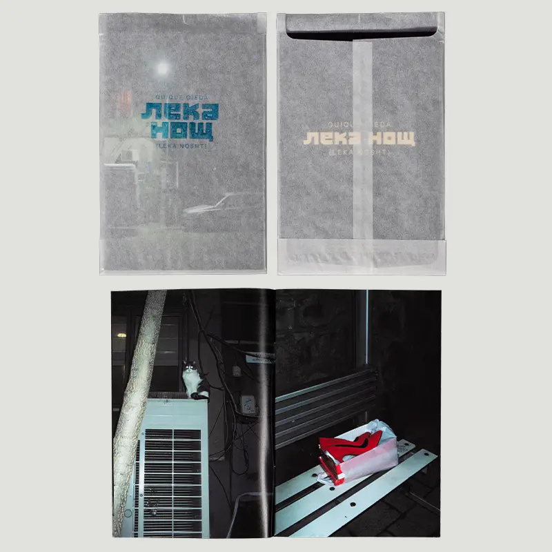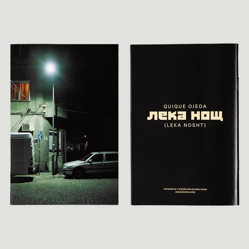 Leka Nosht (“buenas noches” en búlgaro) es un fanzine fotográfico realizado por Quique Ojeda que recopila una serie de fotografías nocturnas tomadas principalmente en Bulgaria. La fotografía de este proyecto se realizó durante varias visitas al país en 2024.